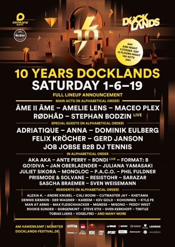 Am 1. Juni 2019 wird Münster zum 10. Mal zur Pilgerstätte für alle Freunde ehrlich elektronischer Musik, wenn das DOCKLANDS FESTIVAL 2019 seine Pforten öffnet.