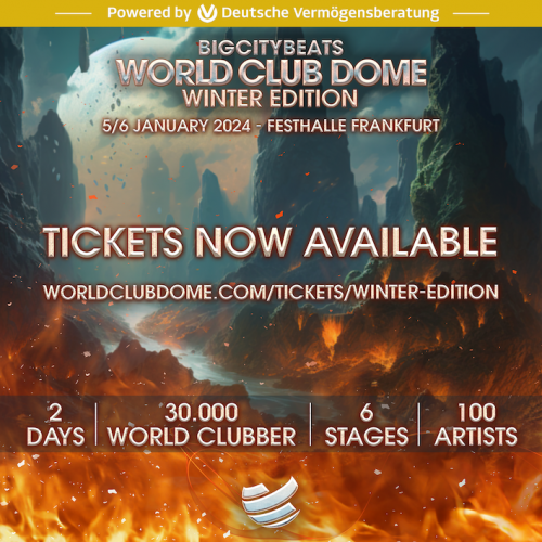 Tickets für die BigCityBeats WORLD CLUB DOME Winter Edition am 5. und 6. Januar 2024 gibt es in der Super Earlybird Phase für 99 Euro zzgl. Gebühren unter: