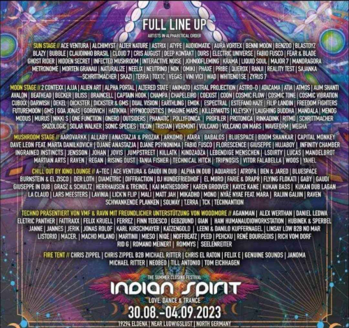 Noch 15 Tage bis sich die Gemeinde Eldena in Mecklenburg-Vorpommern wieder zum Wallfahrtsort für Anhänger von Goa und Psytrance aus der ganzen Welt verwandelt. Vom 30. August bis 04. September 2023 werden beim Indian Spirit Festival auf insgesamt sechs Bühnen fünf Tage lang nonstop Musik präsentiert. Es ist eines der größten Happenings seiner Art und bietet das beste Line Up dieser Genres in Europa. Insgesamt 250 international renommierte Künstler aus Goa, PsyTrance und Techno spielen auf drei Mainstages sowie drei kleineren Bühnen. Über 20.000 Besucher begeben sich auf eine unvergessliche Reise in die Welt von „Liebe, Dance und Trance“. Der Aufbau für das größte psychedelische Festival in Deutschland, Österreich und der Schweiz läuft bereits seit zwei Wochen. Jetzt werden die letzten Details verraten.