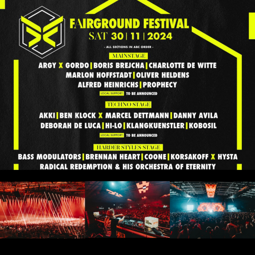Seit Beginn 2022 überzeugt das FAIRGROUND Festival mit einem einzigartigen Line-up, das in der Deutschen Festival-Landschaft seinesgleichen sucht. Auch 2024 ist das Line-up wieder gespickt mit Hochkarätern und Superstars aus unterschiedlichen Bereichen der elektronischen Musik. Dies zeigen auch das Line-up für den Winter.