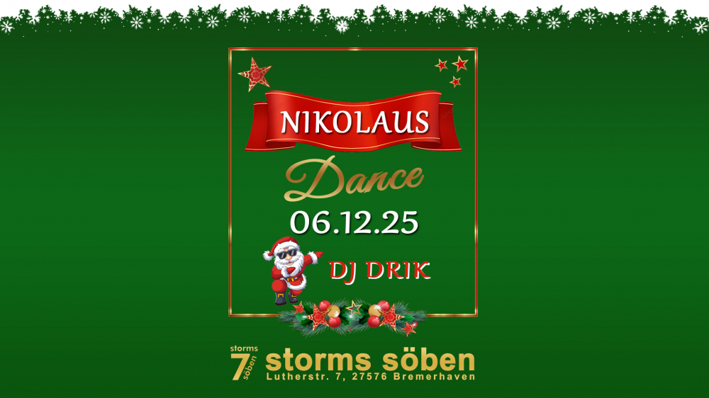 Am 06. Dezember laden wir euch herzlich zu unserem Nikolaus Dance im storms söben ein.