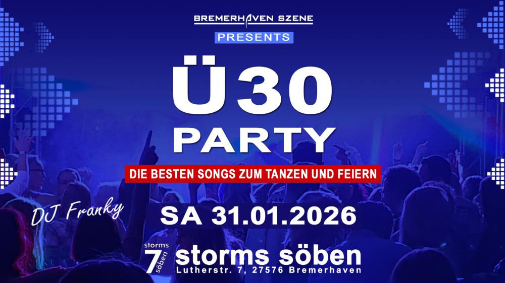 Am Samstag den 31. Januar geht es mit unserer Ü30 Party Bremerhaven im storms söben weiter.