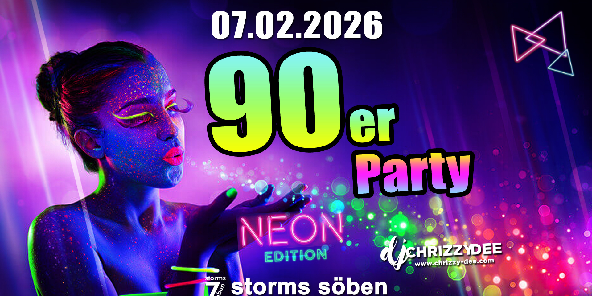 Am Samstag den 07. Februar haben wir für Euch die 90er Party als Neon Edition!