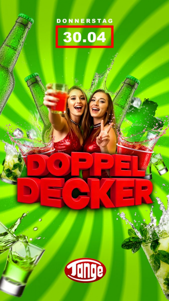 Also schnappt euch eure Party-Crew kommt in die Disco Tange und feiert mit uns die legendäre Doppeldecker-Nacht!
